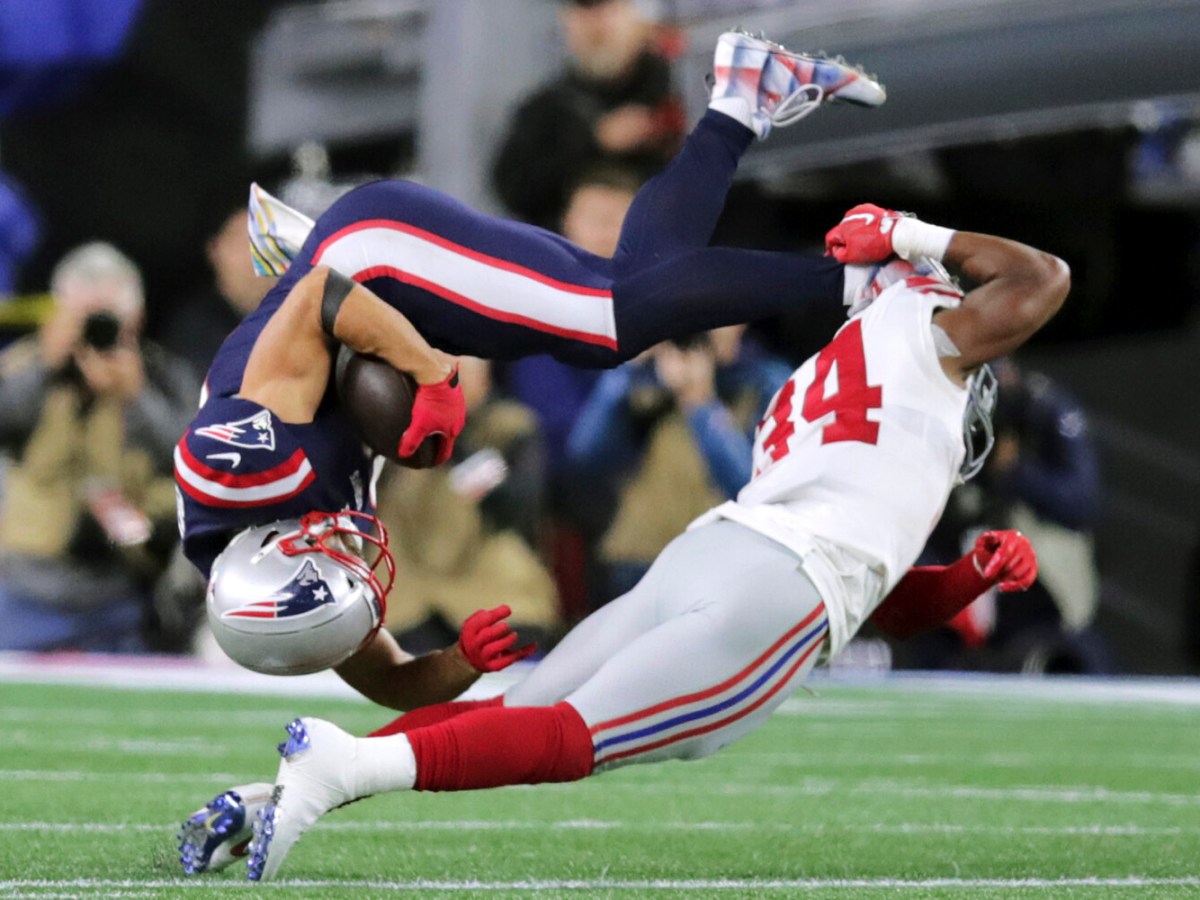 Unbeaten Patriots force four turnovers to top Giants, 35-14
