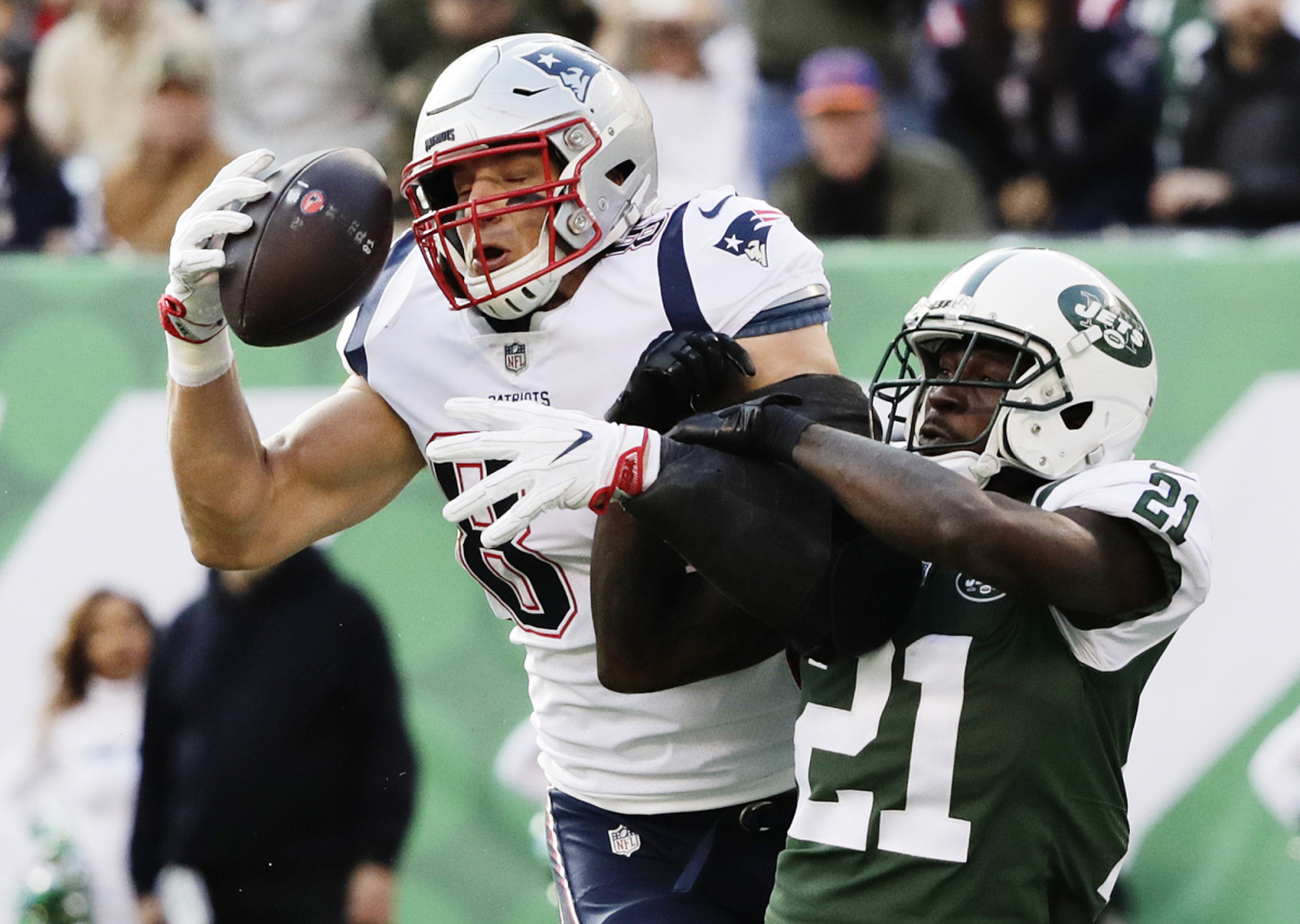 Tom Brady throws three first-half touchdowns in New England’s win over the Jets to end the regular season.