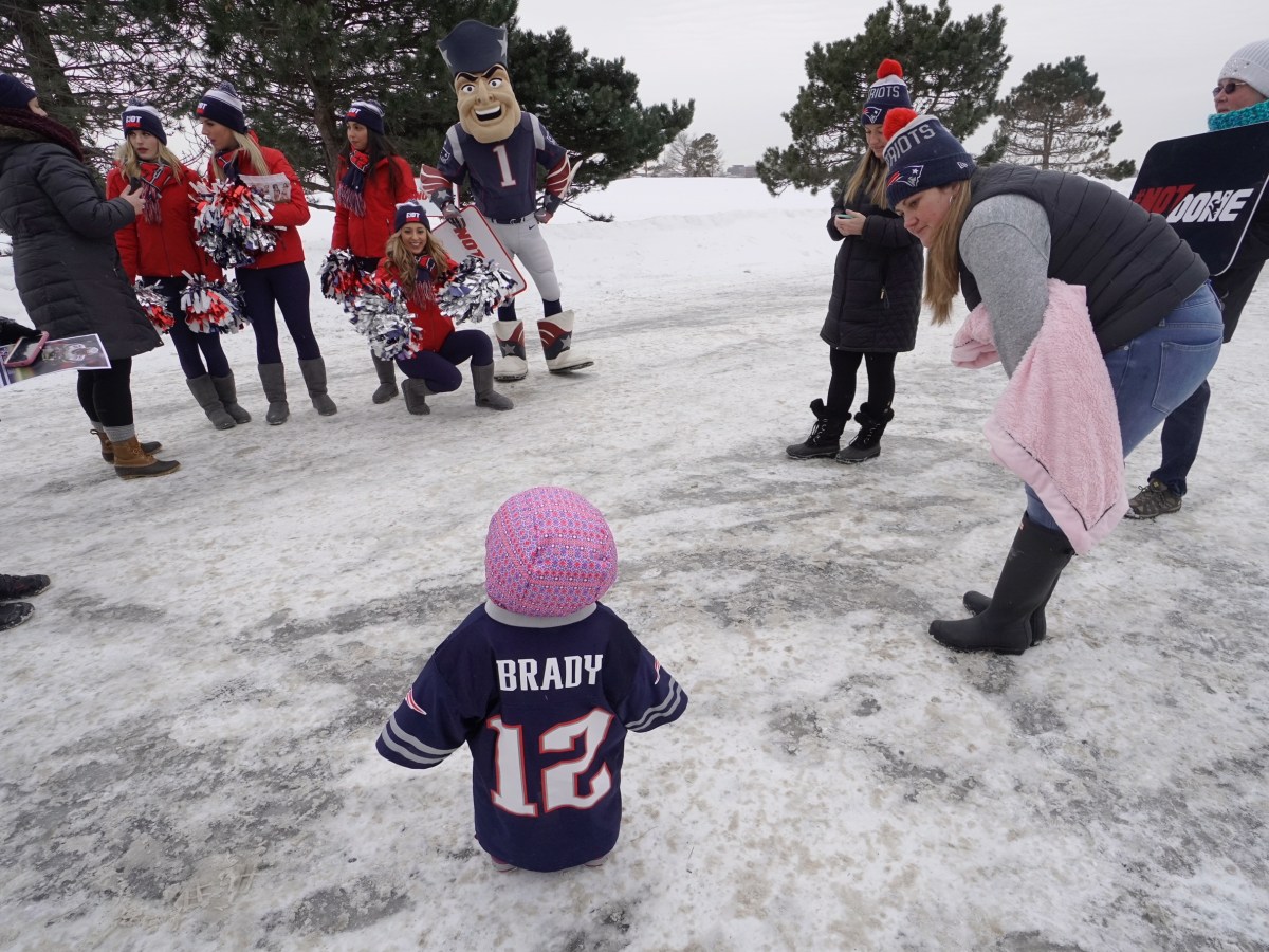The team’s cheerleaders and mascot visit Maine as part of a tour of all the states in New England.