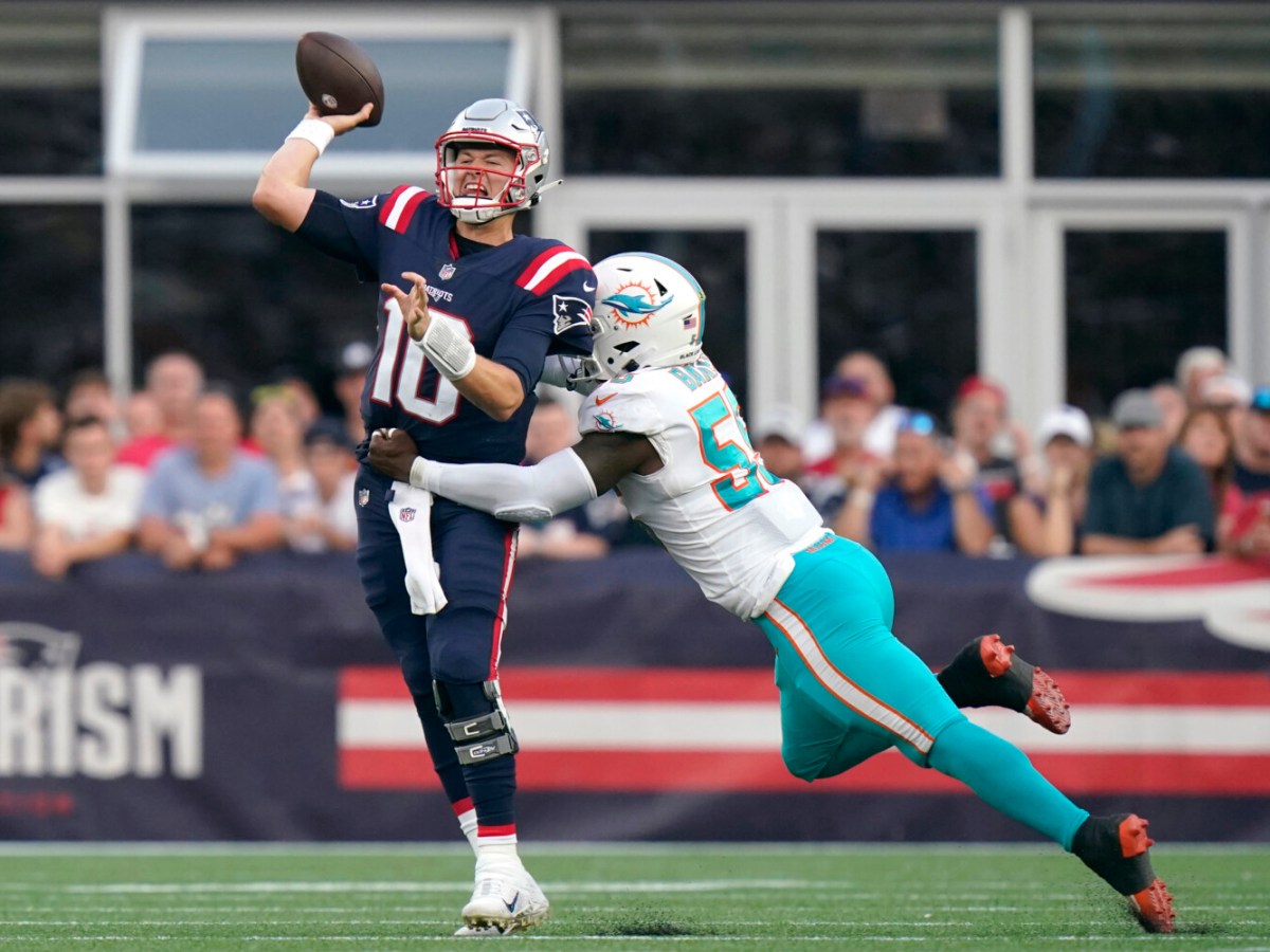 Damien Harris loses a fumble at the Miami 11 with 3:18 left, and New England falls in rookie quarterback Mac Jones’ debut.