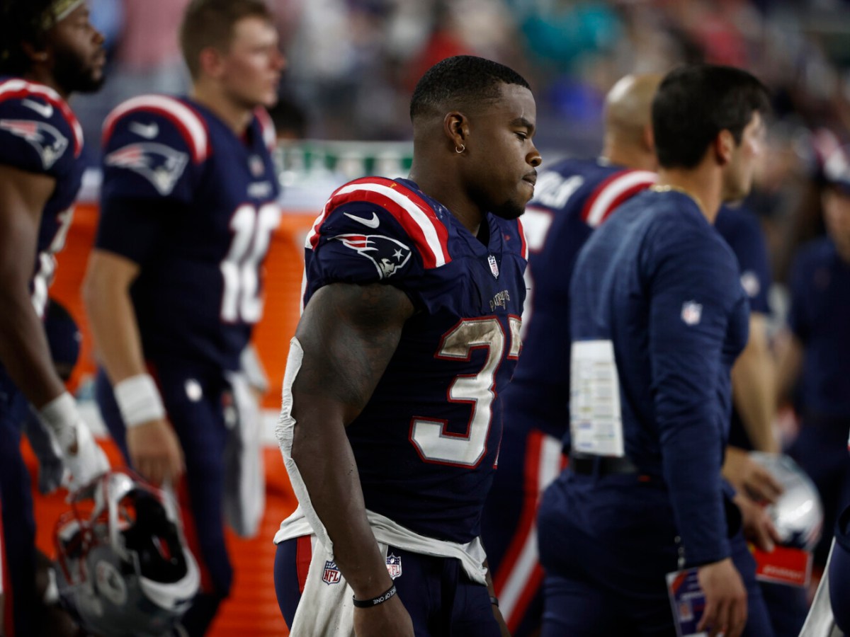 Running backs Rhamondre Stevenson and Damien Harris both lost fumbles in New England’s 17-16 loss to the Dolphins.