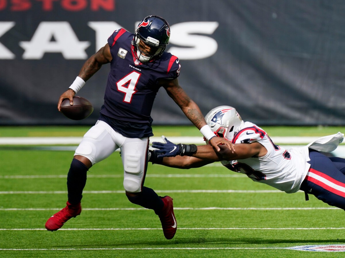 Deshaun Watson accounts for three touchdowns as Houston beats New England, 27-20.