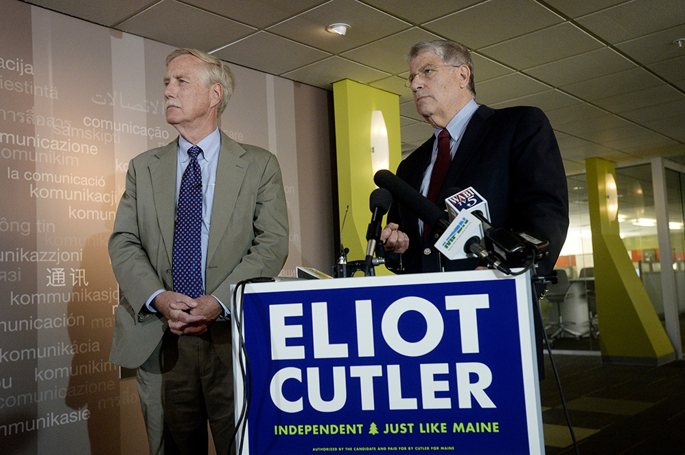 The senator makes his support for Eliot Cutler official, saying Cutler is free to work with both parties in Augusta and has a strong business background.