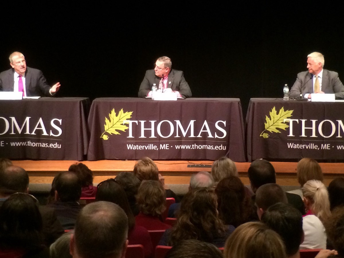 The Waterville debate focused on education and the economy, and highlighted differences in international trade and a proposal for a privately funded East-West highway.