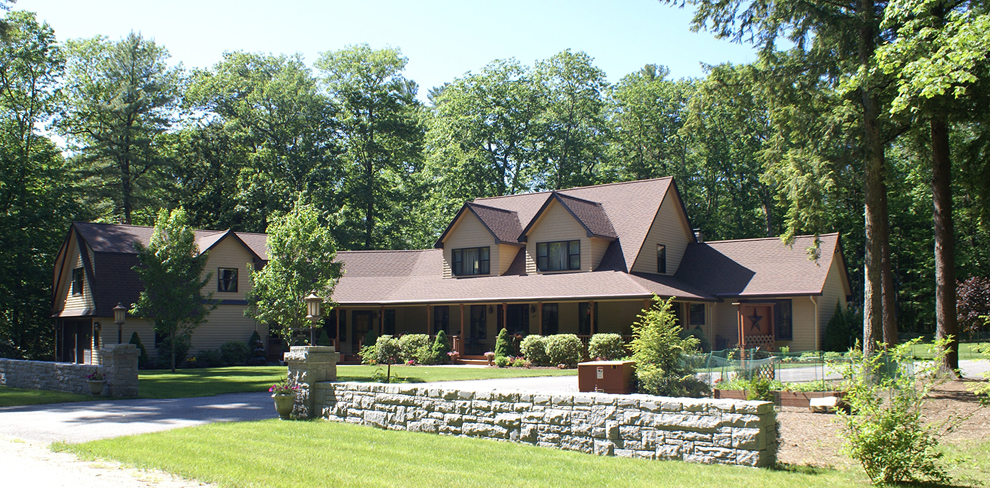 The elegant home near Little Sebago Lake has an additional building lot available.