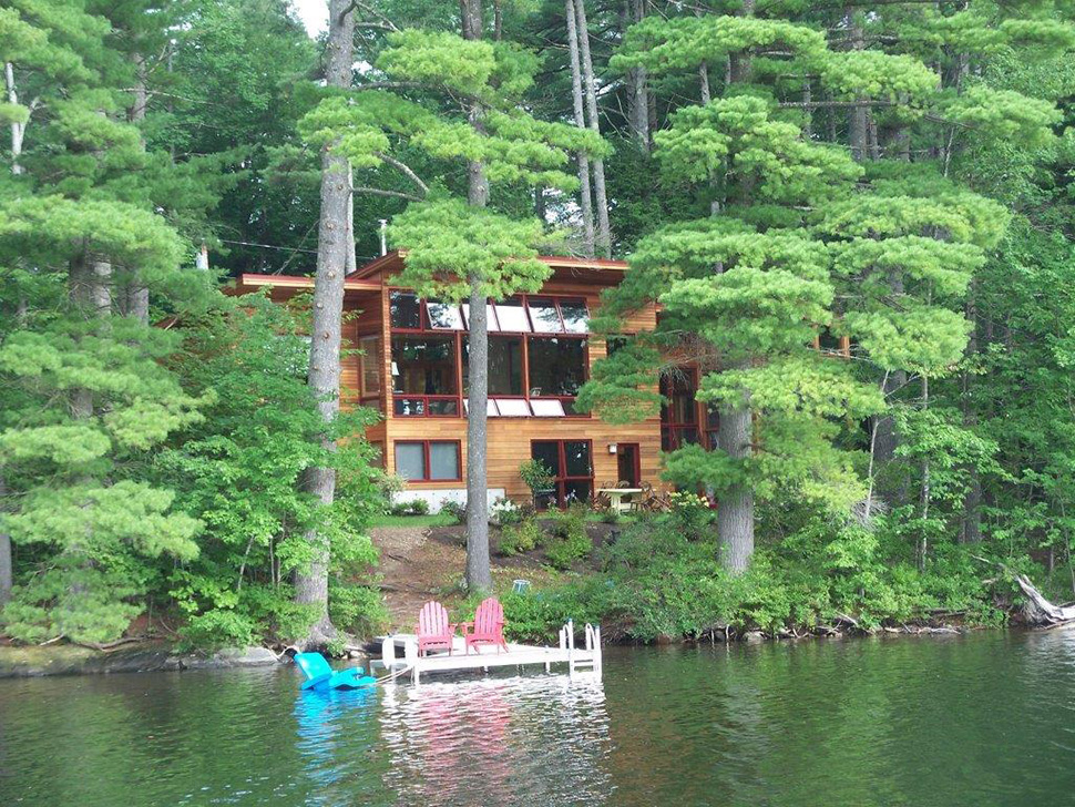 The contemporary home built in 2008 has 133 feet of frontage, with dock, on Maranacook Lake.