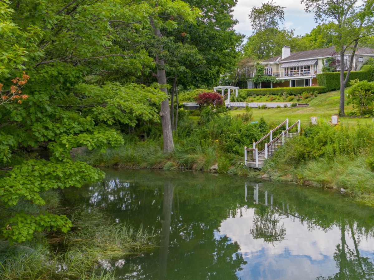The home on a gorgeous triple lot looks out over Back Cove, and has private frontage on a tidal stream.