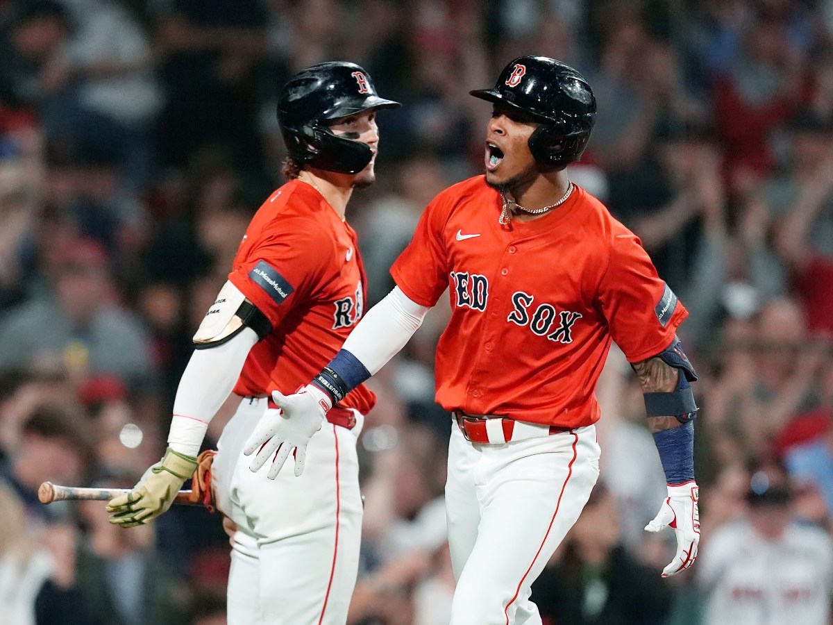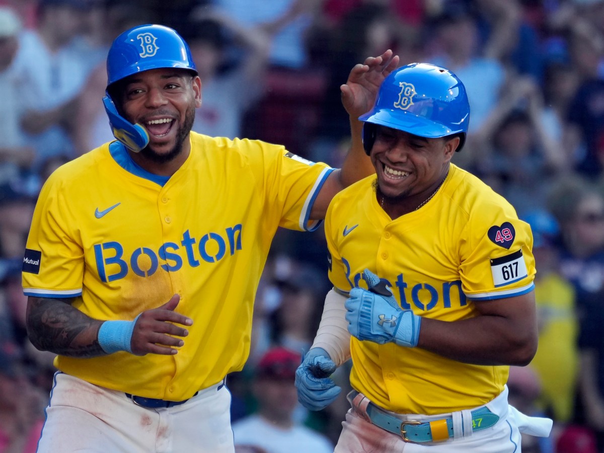 Rafael Devers hits two home runs and Jarren Duran adds another for Boston.