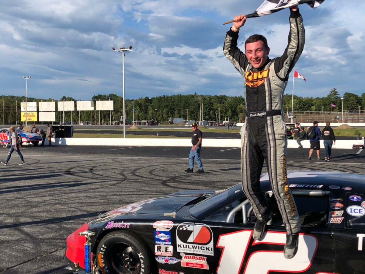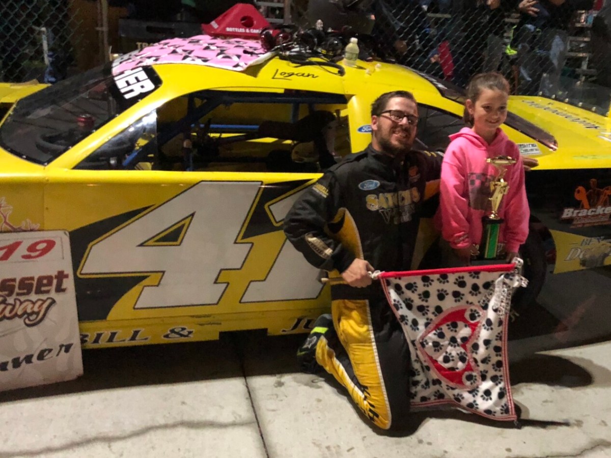 Driver becomes first to win both of Wiscasset Speedway’s signature events after rallying from late penalty Sunday.