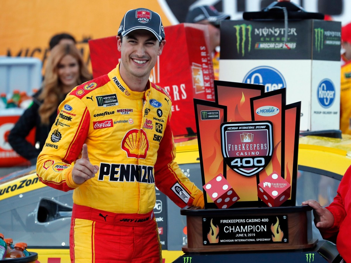Joey Logano wins his second race of the season, holding off Kurt Busch and Martin Truex Jr.