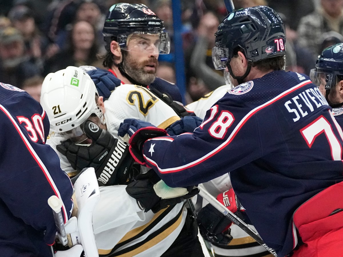 Van Riemsdyk has a goal, 2 assists to lead Bruins over Blue Jackets 4-1