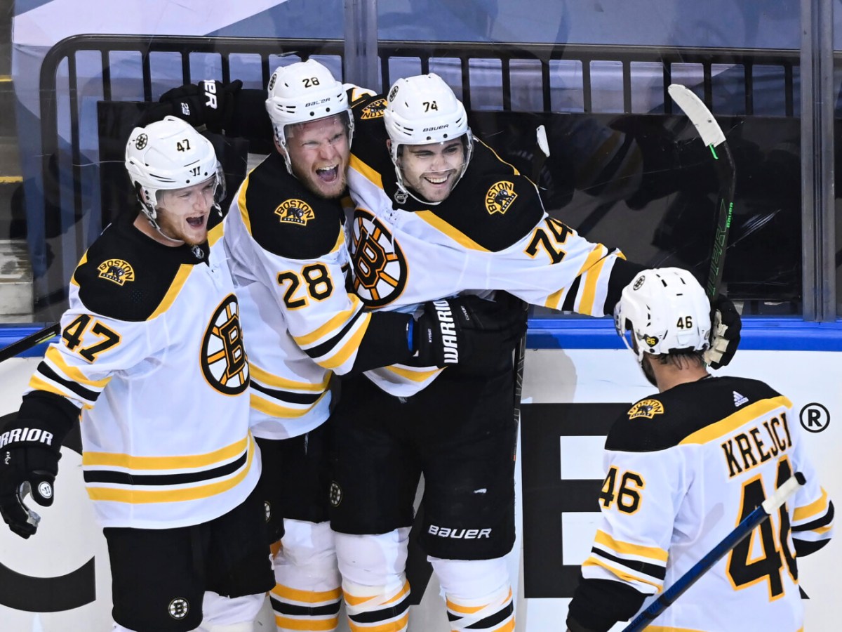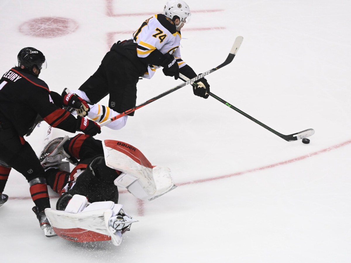 Jake DeBrusk scored two goals in Boston’s come-from-behind win over Carolina in Game 4.