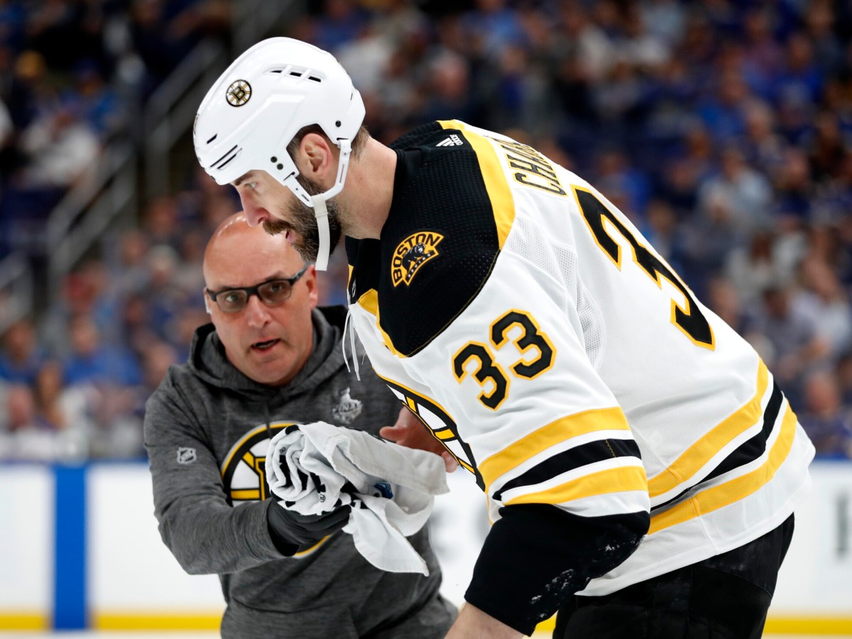 Ryan O’Reill scores twice as St. Louis beats Boston, which lost Zdeno Chara to an injury in the second period, 4-2.