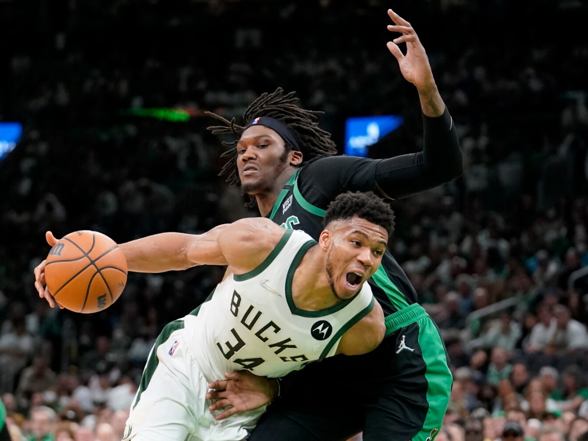 Grant Williams provides clout off the Celtics’ bench, playing tough defense on Giannis Antetokounmpo.