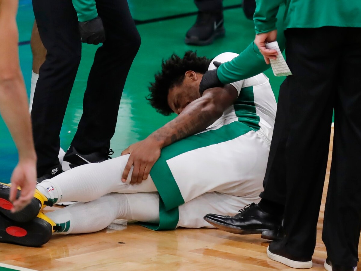 Marcus Smart, injured Saturday night in a loss to the Lakers, has a tear in his left calf muscle.