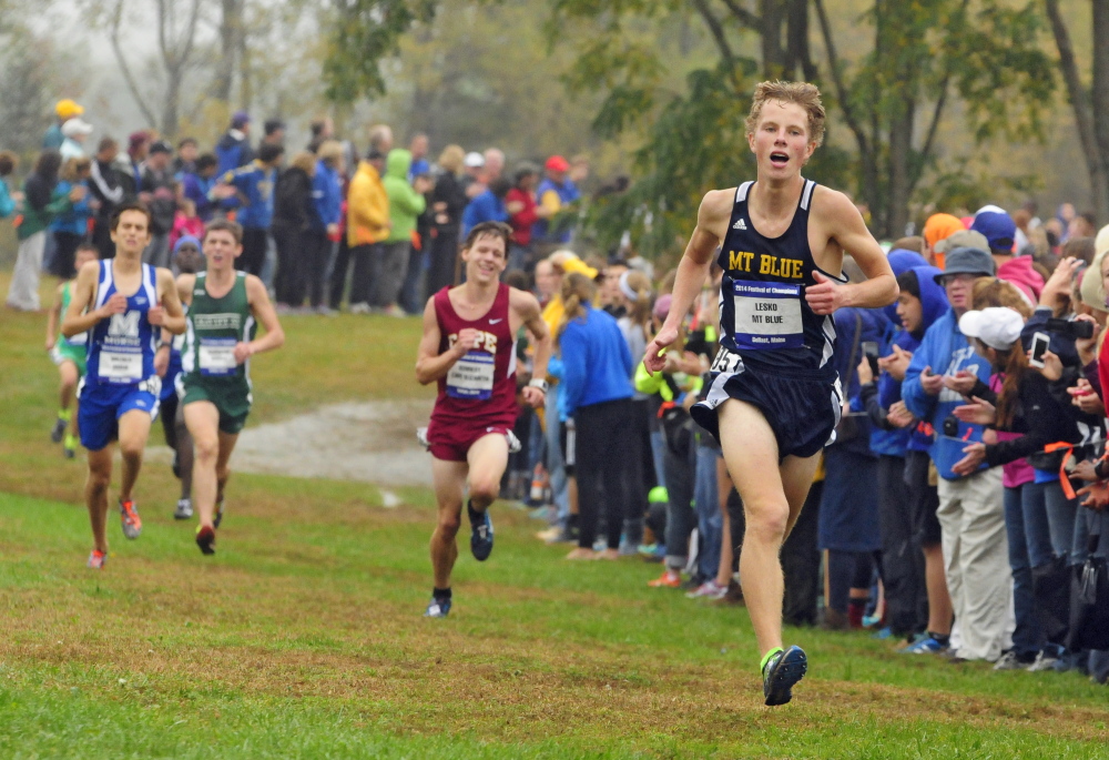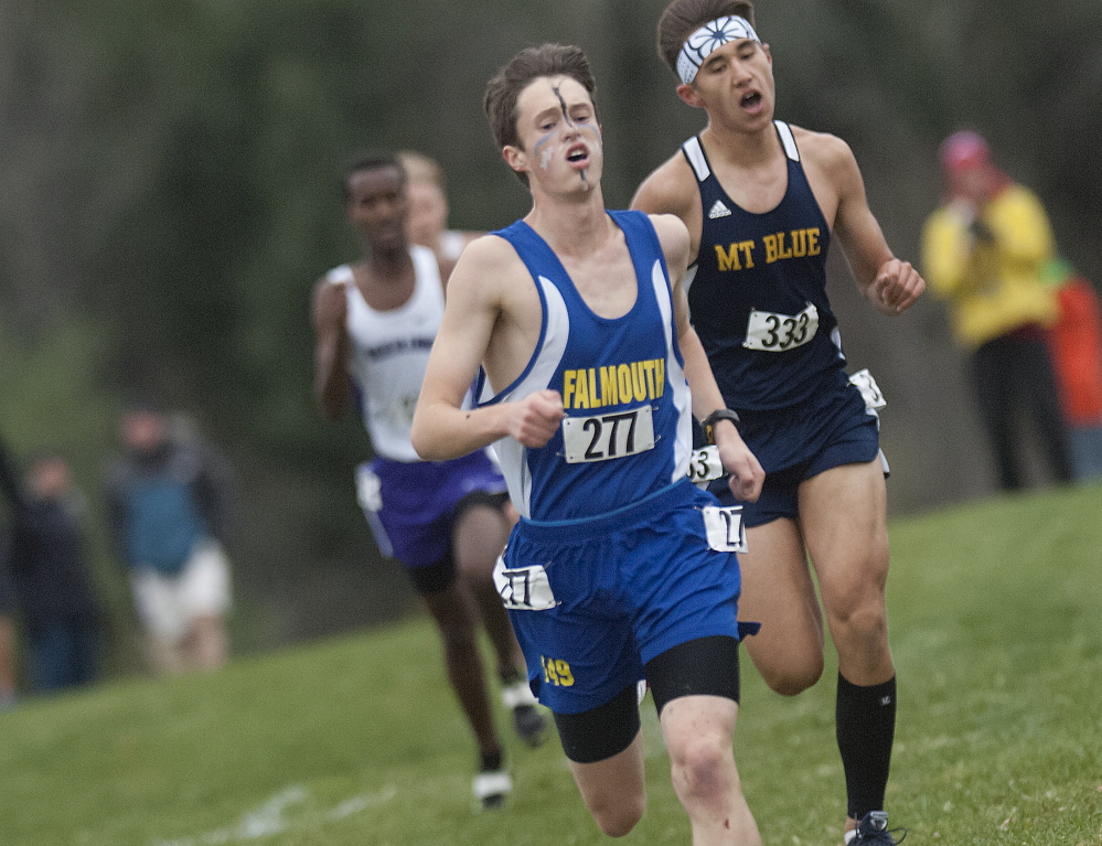 Mt. Blue senior catches Falmouth’s Murdick to win cross country title.