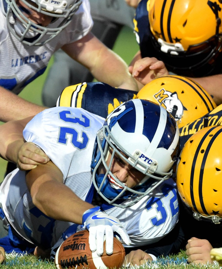 PTC B FOOTBALL: Brewer rushes by Gardiner