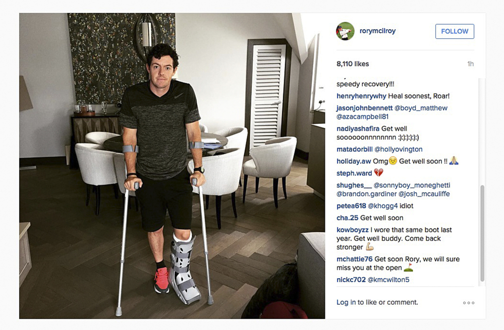 McIlroy made the announcement by posting a photo on Instagram that showed his left ankle in an air cast.