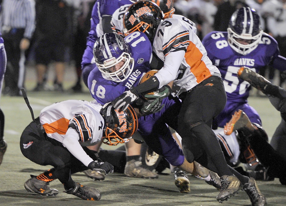 The Hawks end a 25-year state championship drought with a 44-18 win over Brunswick.