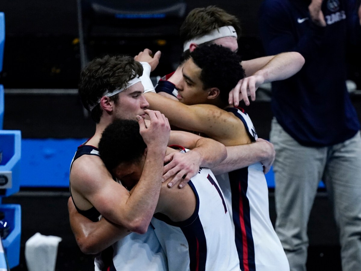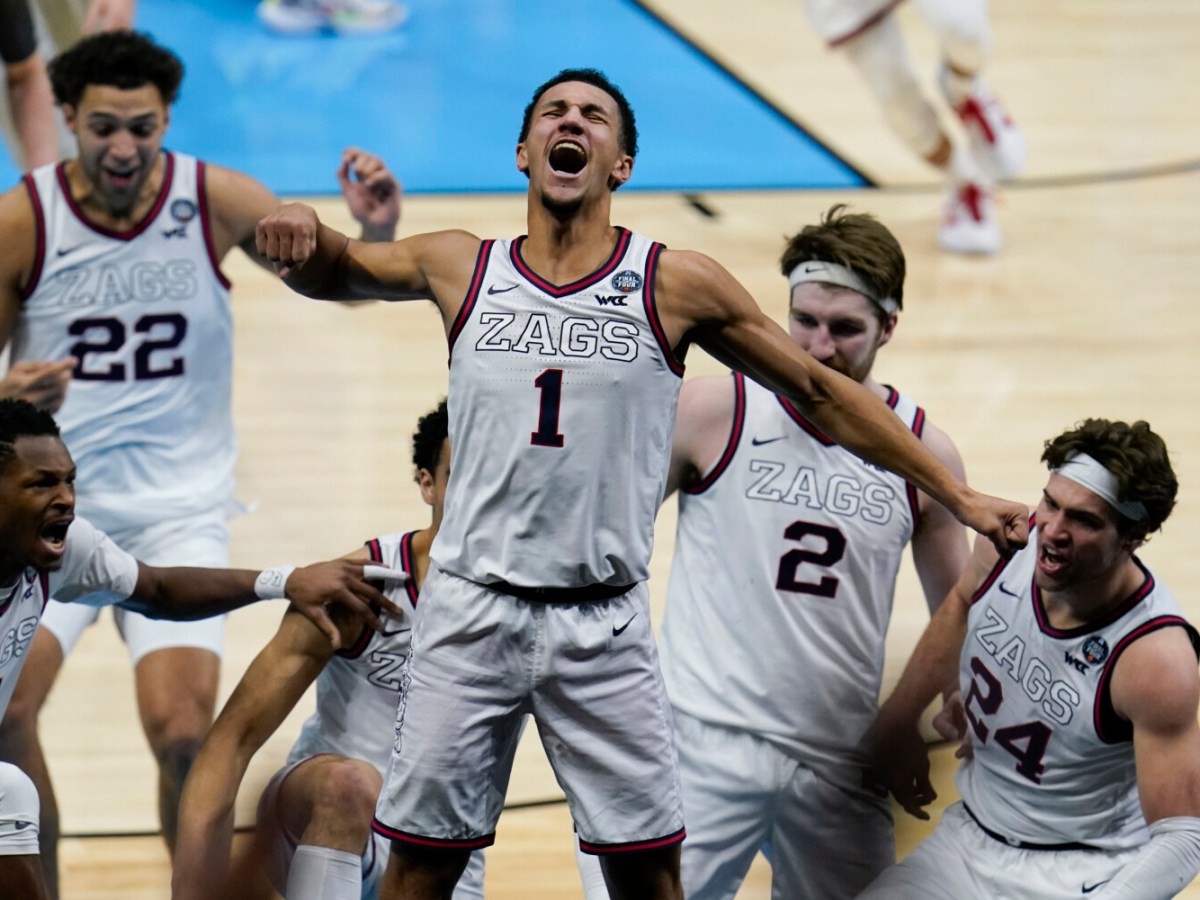 Jalen Suggs keeps the Bulldogs’ unbeaten season alive with a bank shot from about 40 feet, giving top-ranked Gonzaga a 93-90 win and a spot in the national championship game.