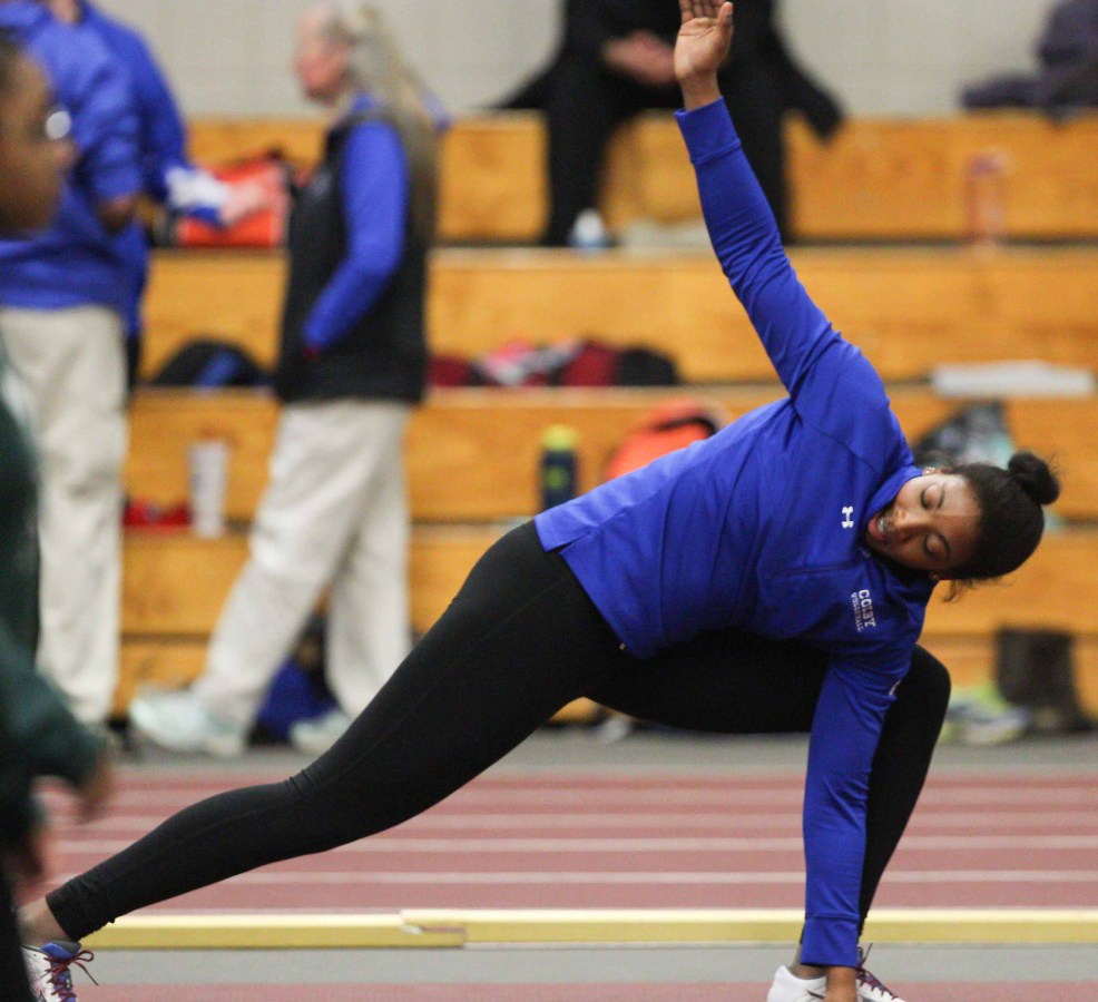 New at the craft, she reaches NCAA Division III nationals in the shot put.