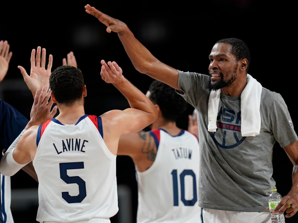 Down by 15 points in the first half, the Americans storm back to rout Australia, 97-78, in the semifinals.