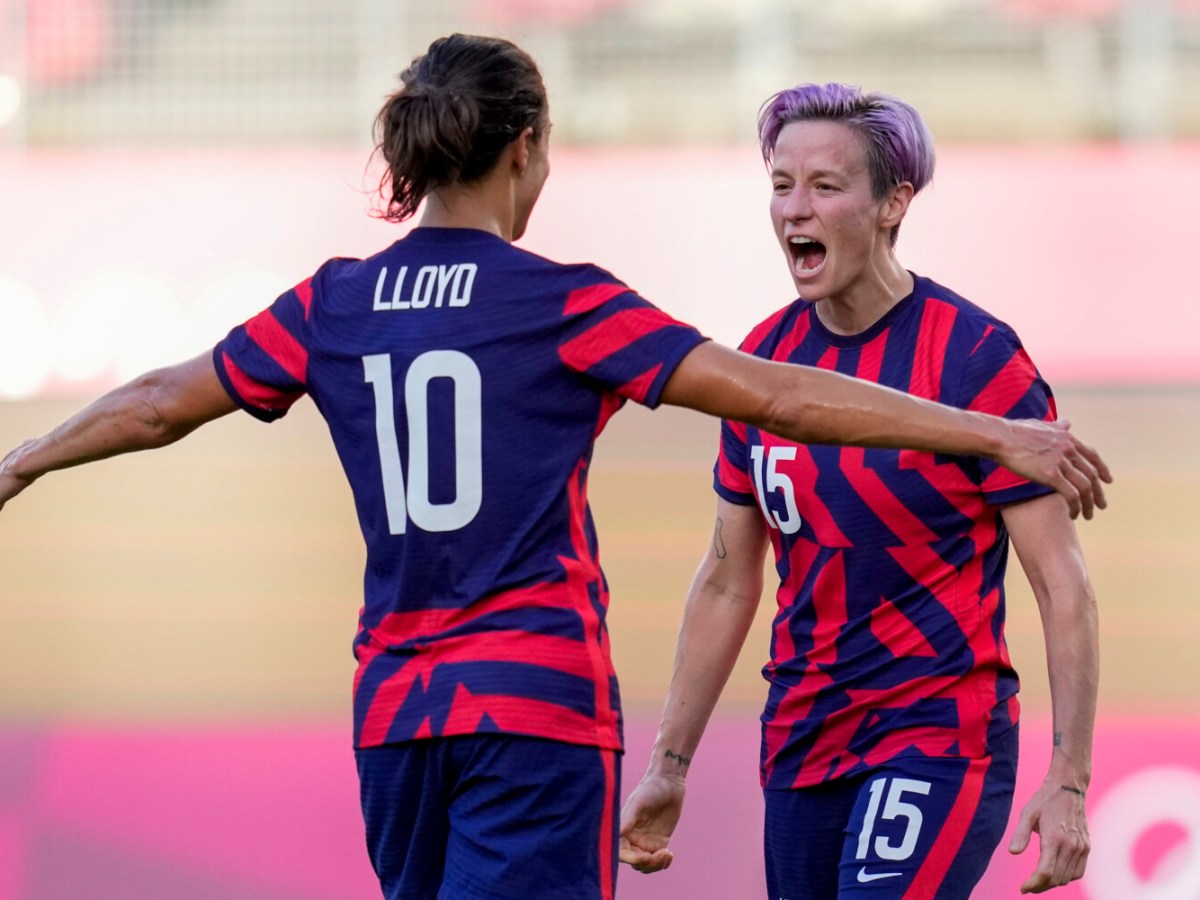 Megan Rapinoe and Carli Lloyd each score a pair of goals in a 4-3 victory over Australia.