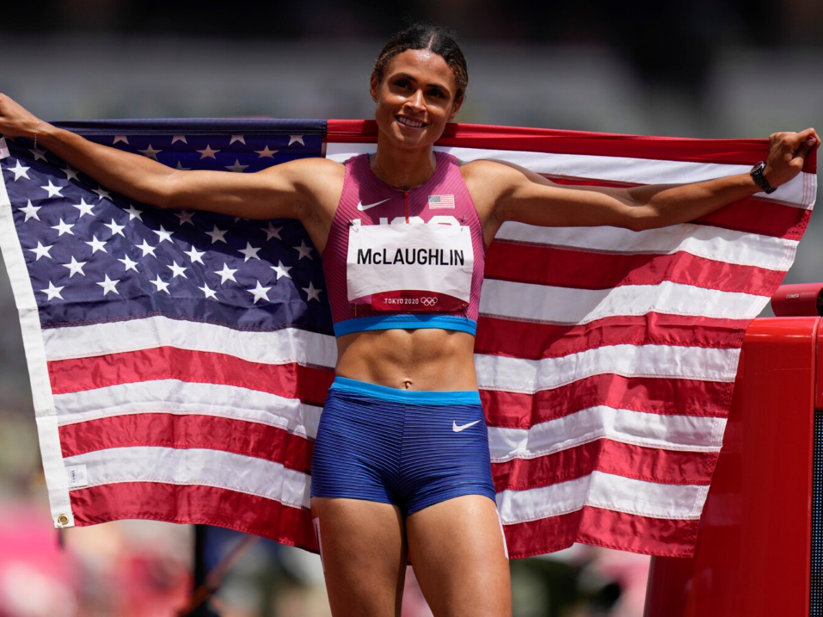 Sydney McLaughlin of the United States comes from behind after the last hurdle to top the defending Olympic champion Dalilah Muhammad.