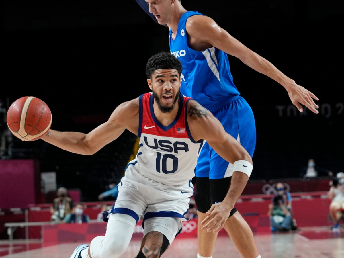 Jayson Tatum scores 27 point and Kevin Durant becomes the all-time leading scorer for USA men’s basketball in Olympic play in a 119-84 win.