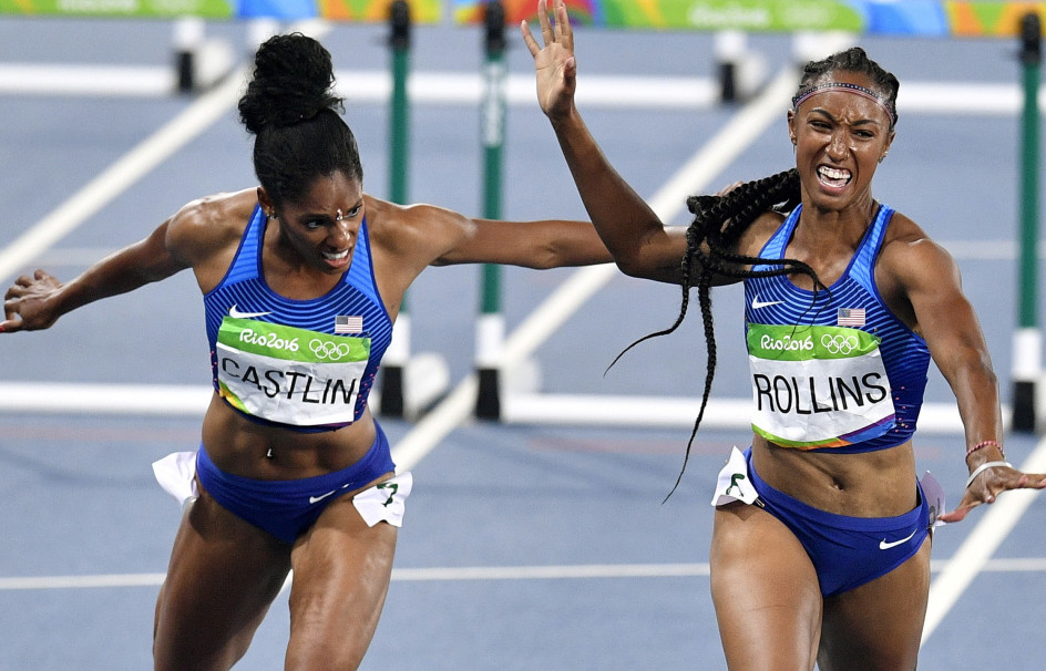 Brianna Rollins wins the race with Americans also finishing second and third.