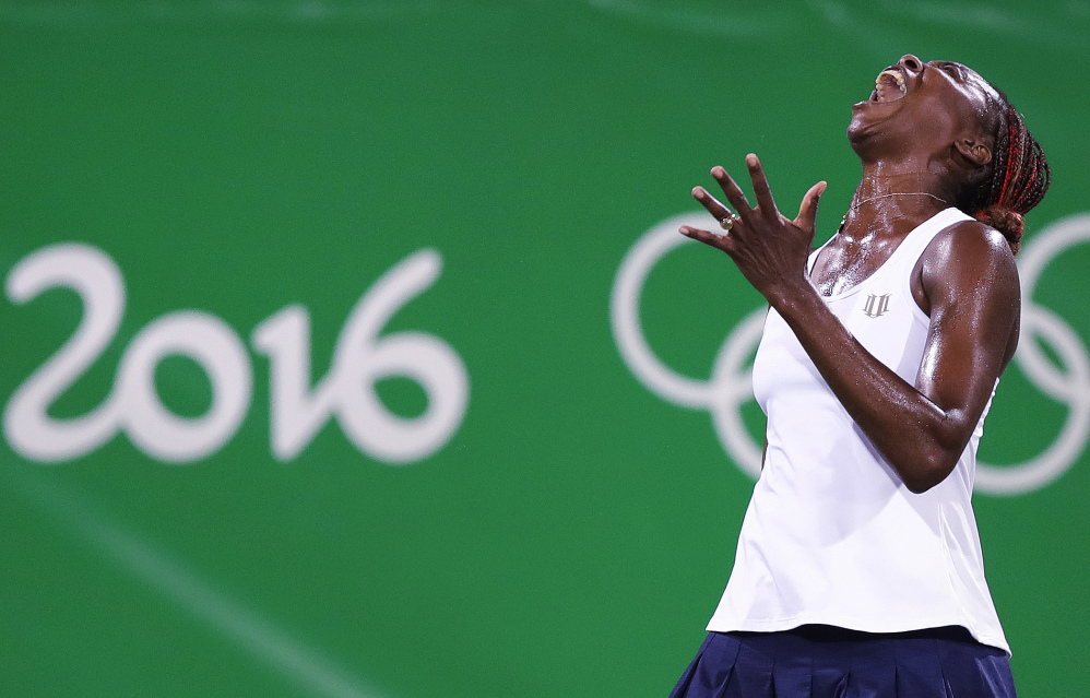 Serena and Venus Williams, seeking a fourth doubles gold medal, lose in the first round.