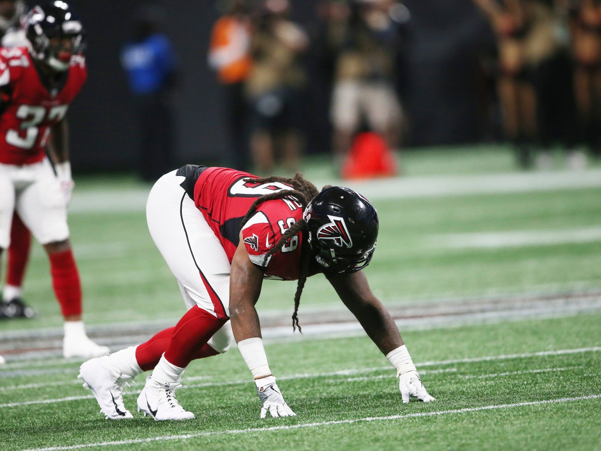 Defensive end Adrian Clayborn, although injured, watched his Falcons lose the lead and then the Super Bowl to New England.