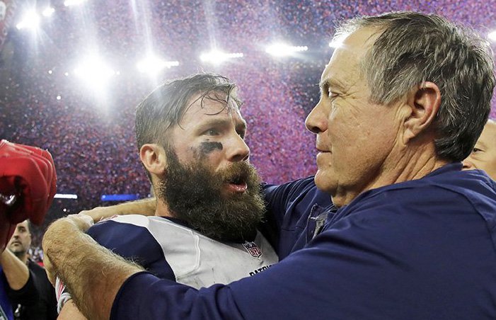 Smiths, Johnsons on hand for all-time classic as Patriots shock Falcons.