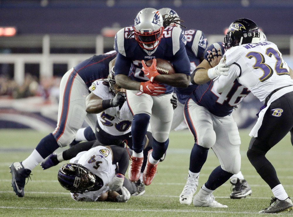 Running back LeGarrette Blount ties franchise mark for rushing TDs in a season, tops 1,000 yards.