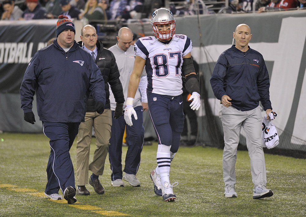 Patriots tight end Rob Gronkowski is questionable to return to play against the Jets.