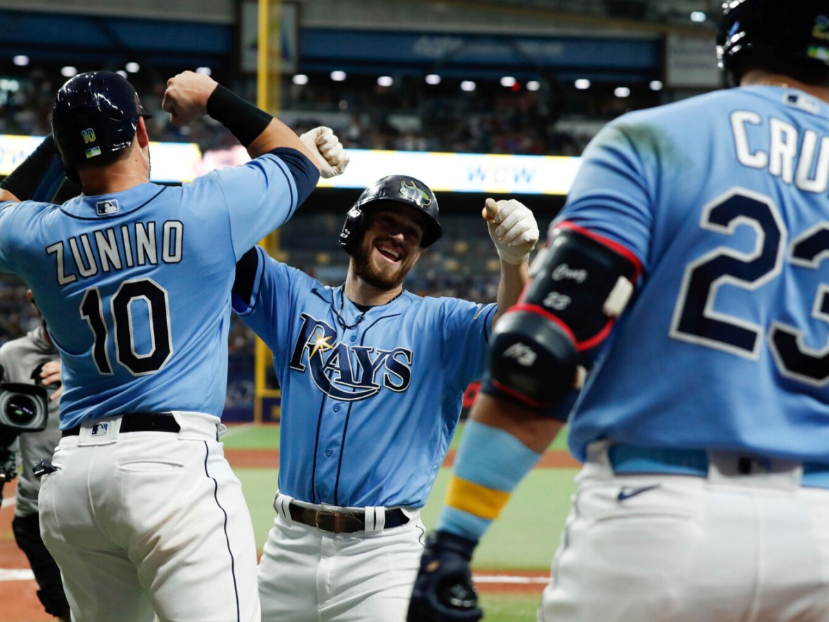 Brandon Lowe hits a two-run home run and Tampa Bay now leads the AL East by 1 1/2 games over Boston, which has lost four straight.