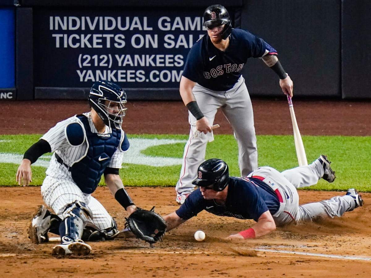 Rafael Devers hits a three-run homer in the first inning, and Nathan Eovaldi improves to 7-2 as Boston takes a 5-2 victory in New York.