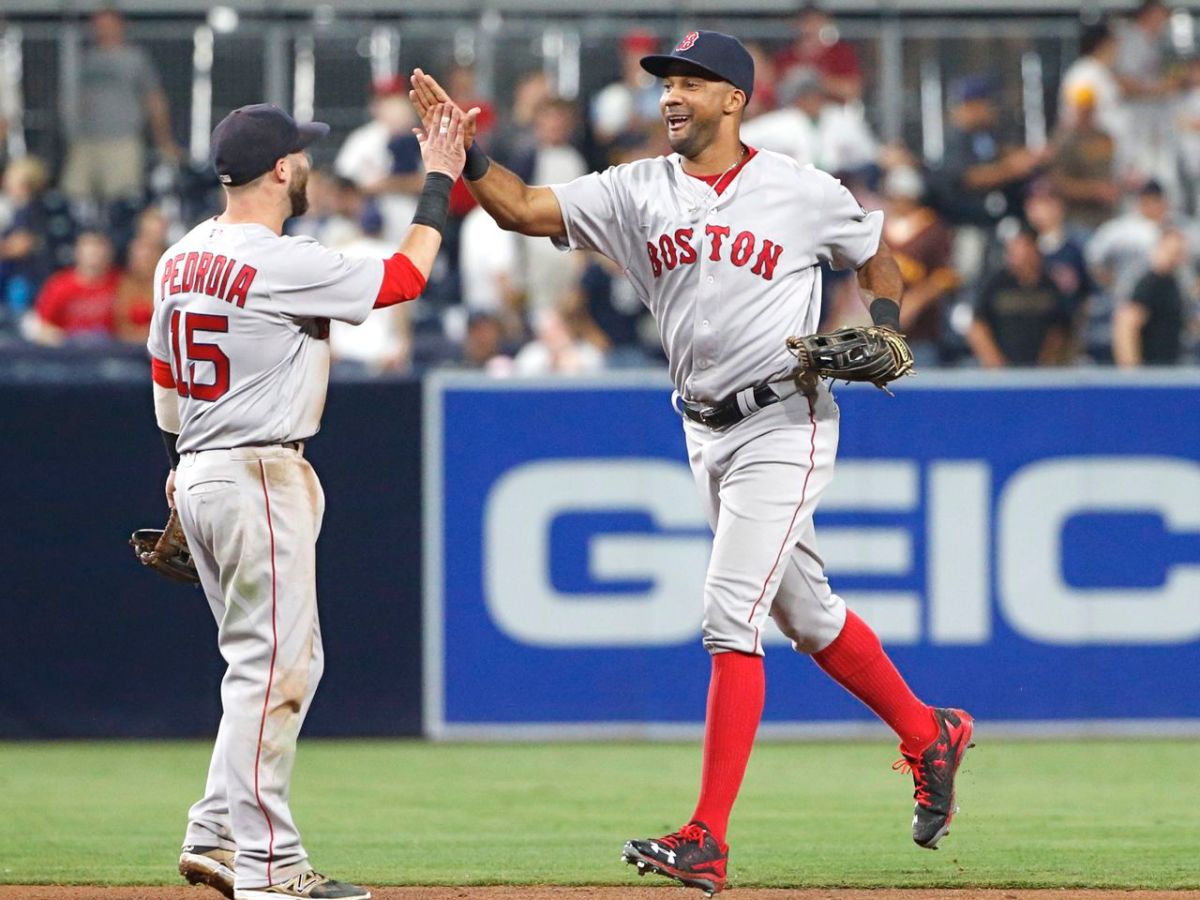 Jackie Bradley Jr. and Chris Young homer and the Red Sox move into a tie for first place in the AL East.