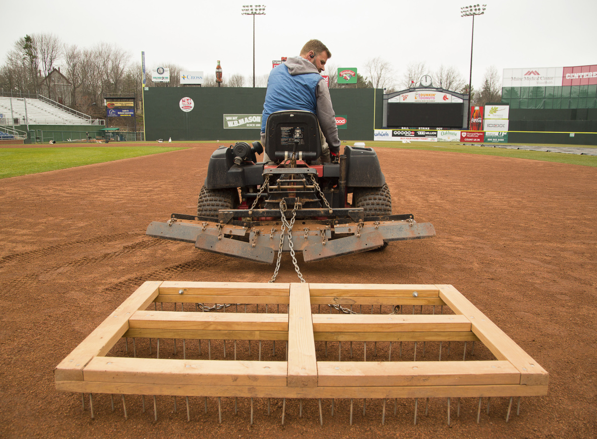 The infield at Hadlock Field is still unplayable after renovations on April 20.