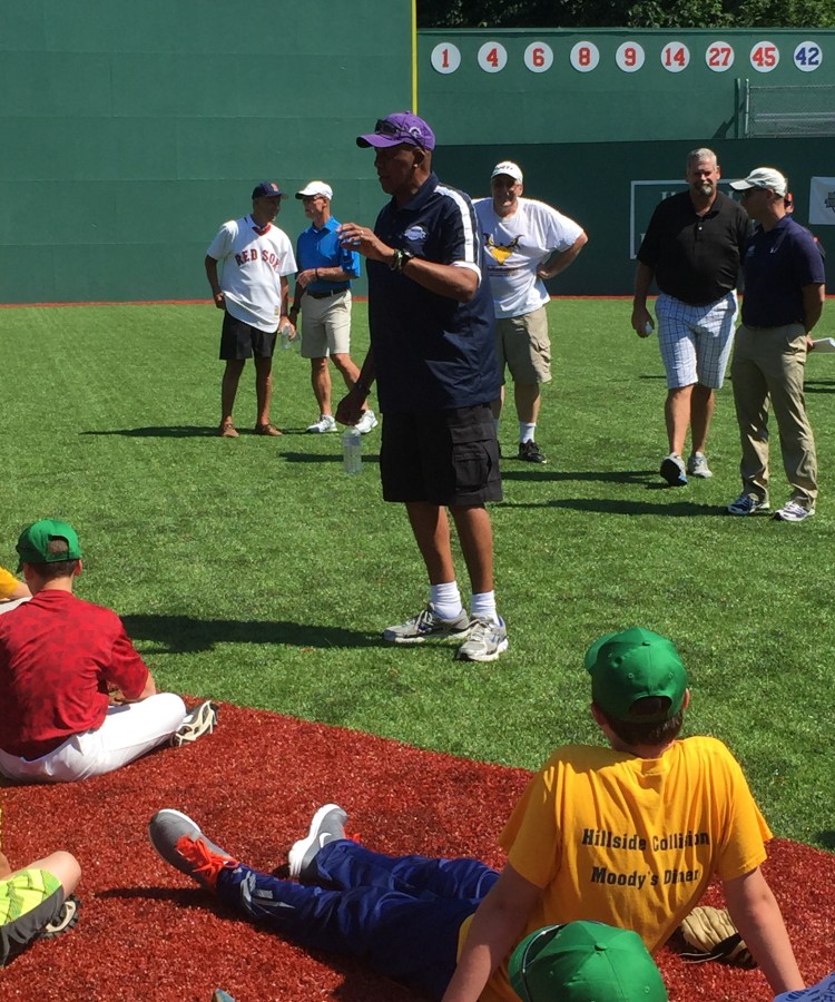 Ferguson Jenkins offers advice at Harold Alfond Fenway Park at Camp Tracy.