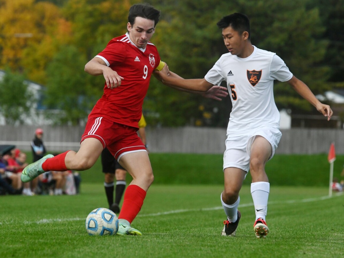 Boys soccer: Timmy Ouellette scored three times for the Saints in the 6-0 win.