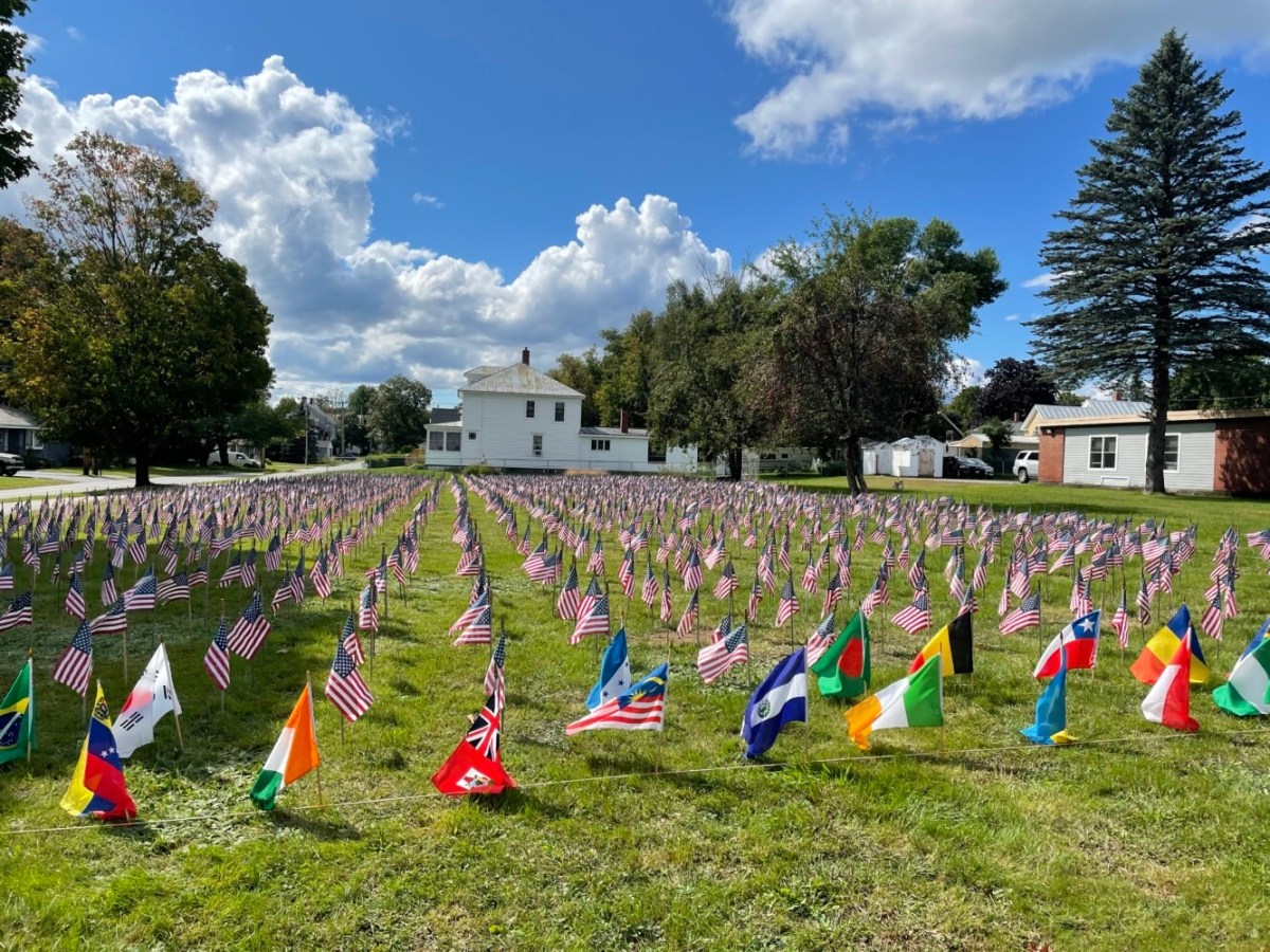 Students at Skowhegan school placed 2,977 flags in the schoolyard.