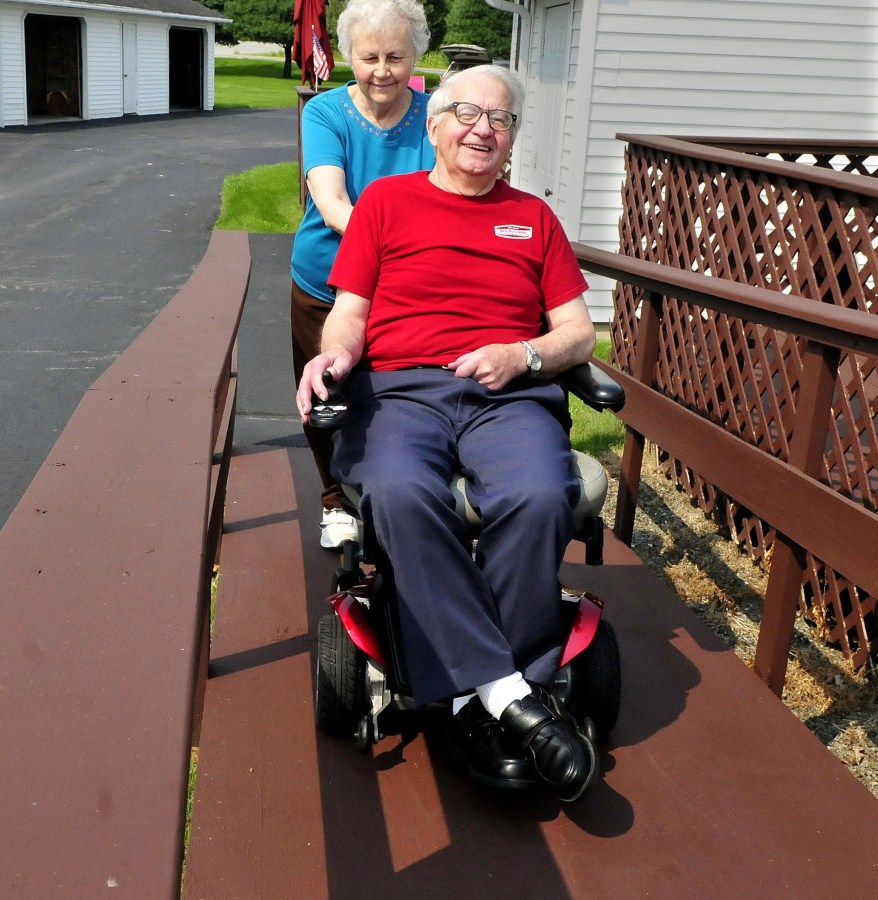 Winslow’s Larry Plourde is in a wheelchair because of an illness that causes balance and motor skills problems, and he and his wife say a little positive attention from others would make life easier, Amy Calder writes.