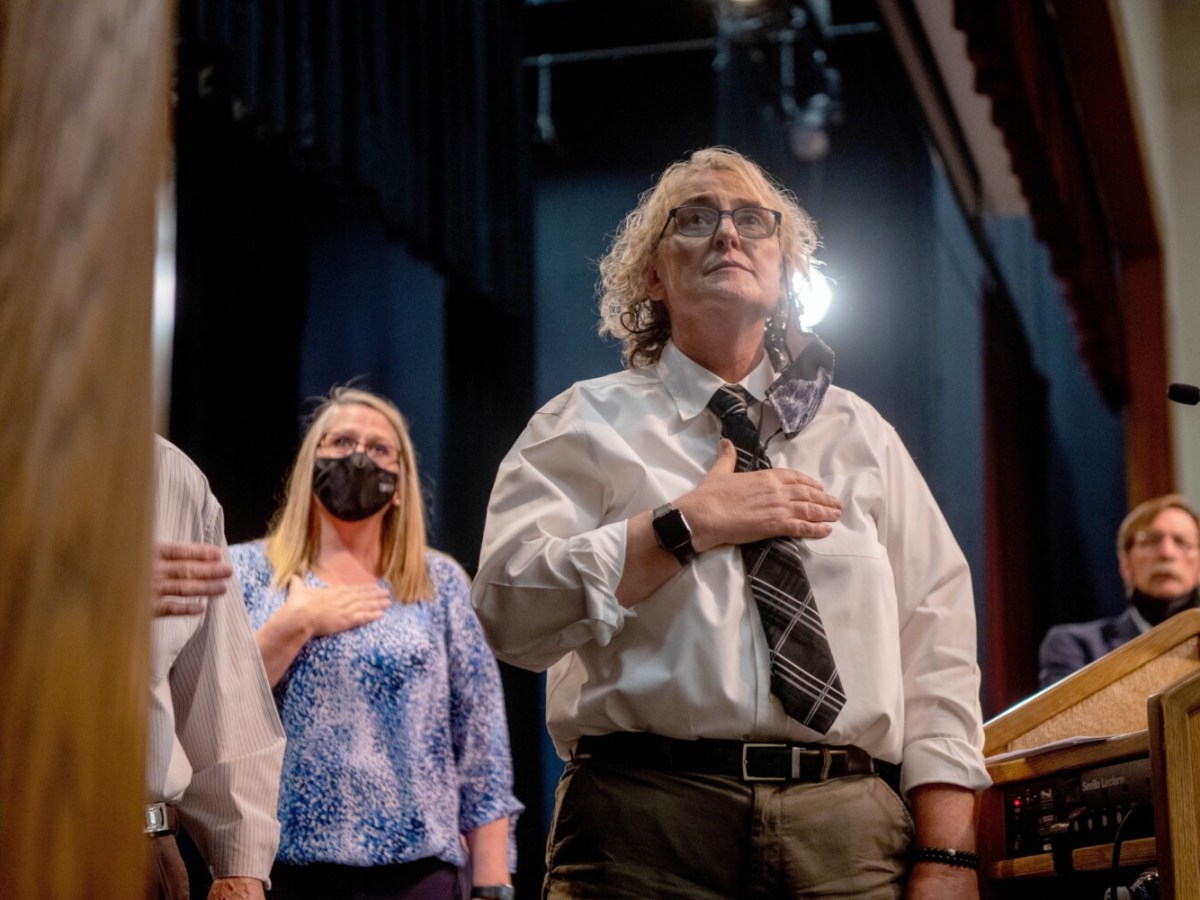 The meeting was held at Messalonskee High School’s Performing Arts Center.