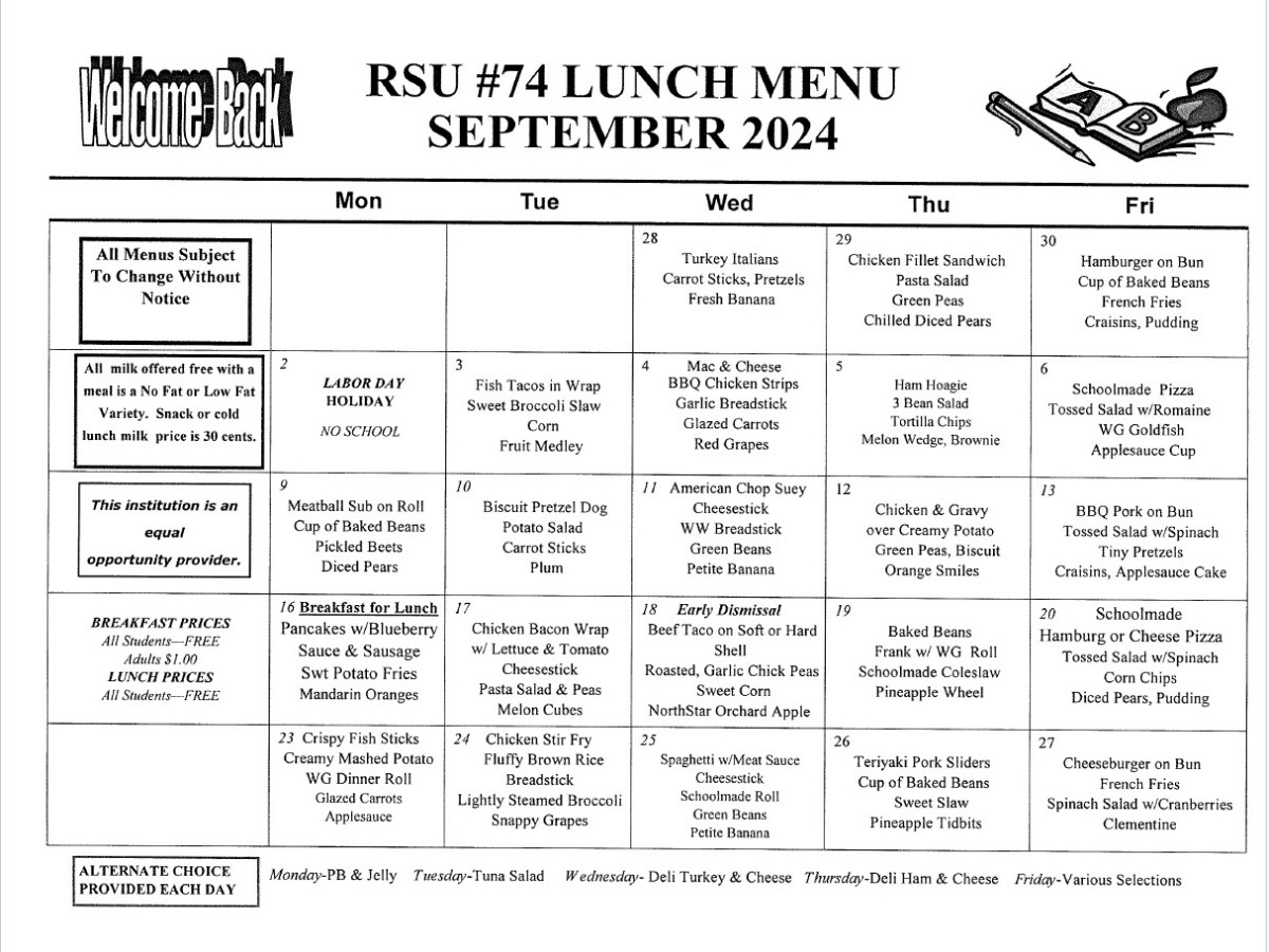 Anson area September school lunch menu