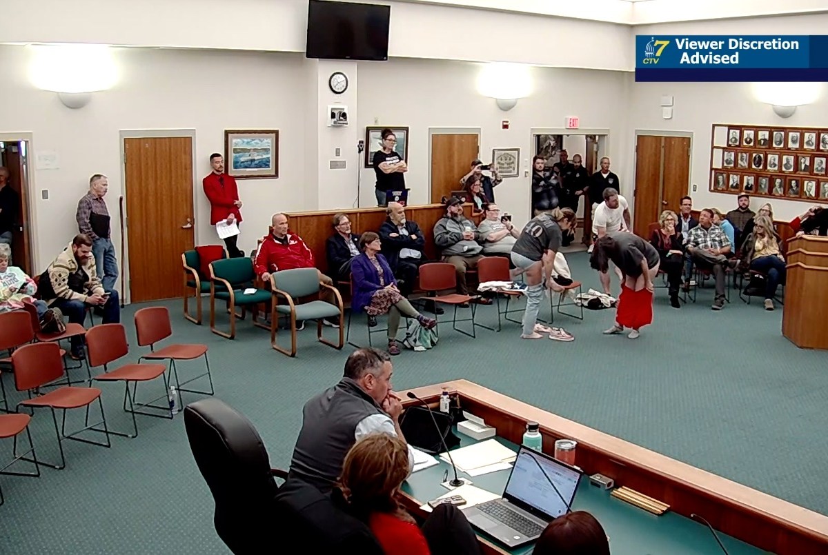 Three people partially disrobed as advocate Nicholas Blanchard challenged the school board’s recognition of transgender students under the federal policy.