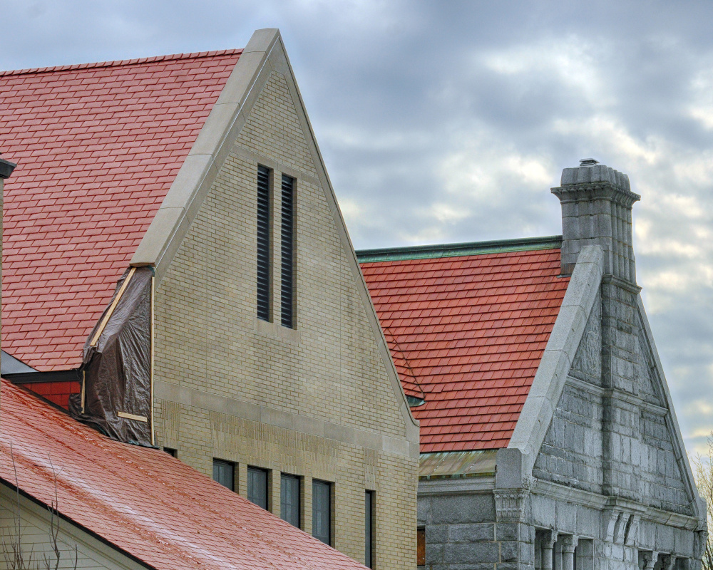 Sometime between when the library closed Saturday and reopened Monday, snow that had piled up on the Pleasant Street side of the building fell off in a large, heavy mass.