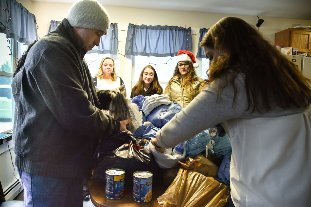 Ten women from the Partners for World Health group brought care packages, nonperishable food and other items to the Bread of Life Veterans Shelter.