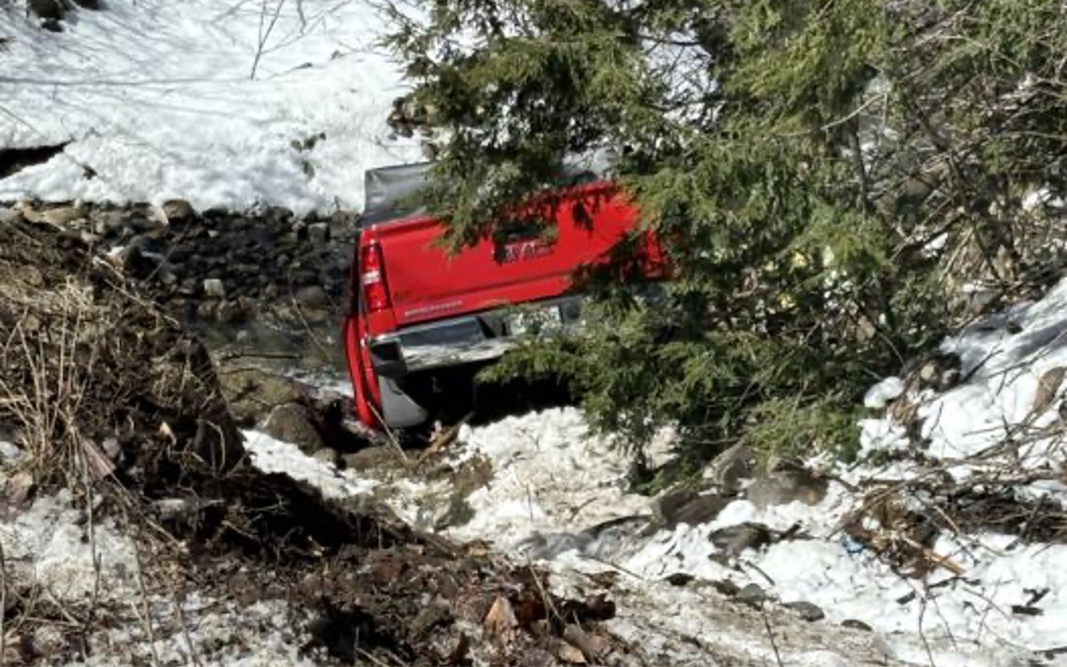 The pickup truck driven by Carey Craig, 46, of Lewiston went off state Route 4, struck a utility pole and down a river embankment.