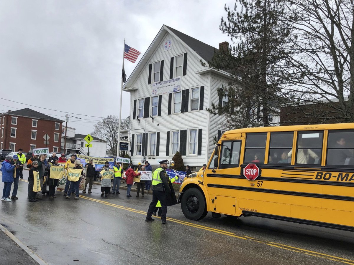 The demonstrators included members of Maine Veterans for Peace and Global Network Against Weapons and Nuclear Power in Space.